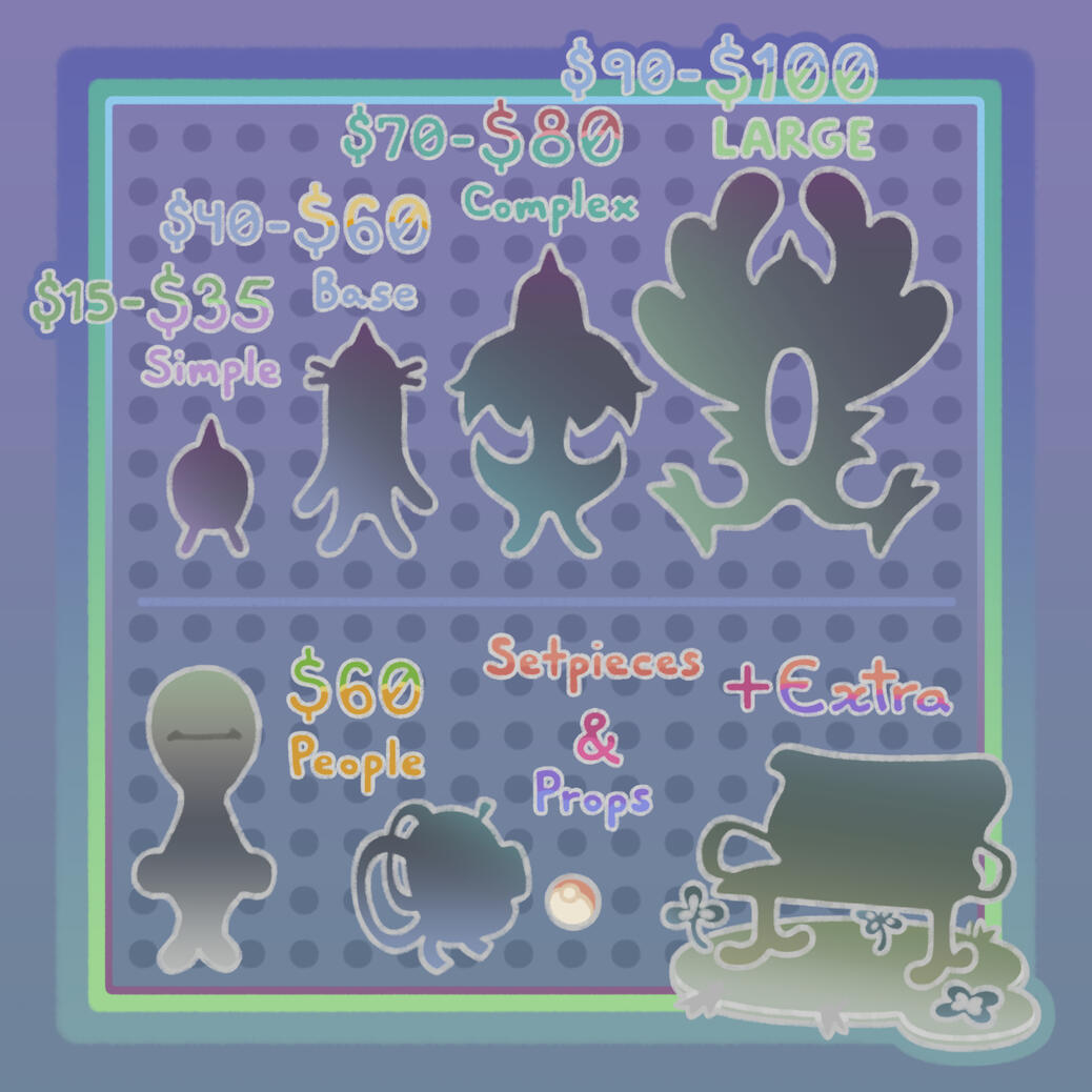 For now, refer to the guide below as a rough estimate - the price will be tuned to match the complexity of the design.